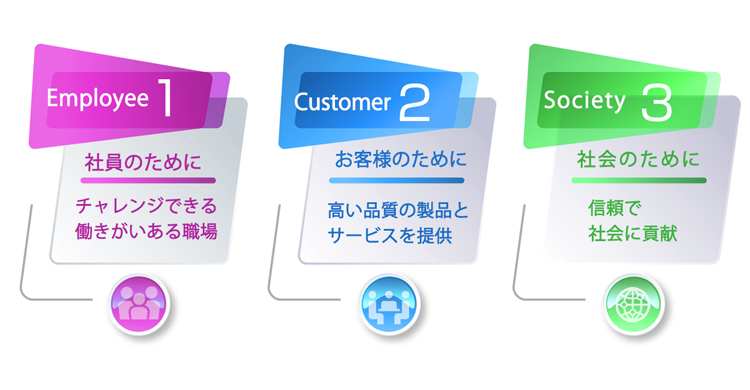 サービスや商品が優れ、社員の人間性や仕事に対する心がけが伴って初めてお客さまからご信頼いただき、末永いおつきあいや積み重ねが企業の成長の源泉になるのだと思っております。